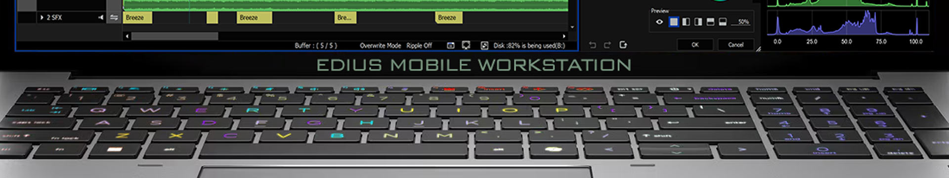 The EDIUS MOBILE WORKSTATION W16LT G11 brings the full performance and the necessary equipment for professional editing to a highly mobile laptop size.